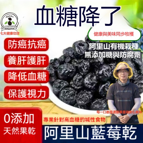 高山生態的甜蜜饋贈---阿里山有機藍莓乾,無添加雜質、鎖住原生營養,七大健康功效,健康美麗雙豐收