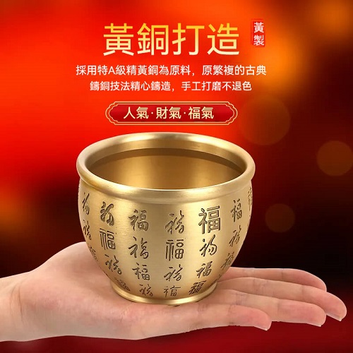 煩惱財運不濟、福氣不足?想要招財納福、家運亨通【百福聚財黃銅米缸】為你帶來傳統風水力量,輕鬆聚財納福,助你財源滾滾、福氣滿滿!精選優質黃銅打造,經典百福圖案雕刻,寓意吉祥如意,擺放在家中或辦公室,招財聚氣,提升運勢!