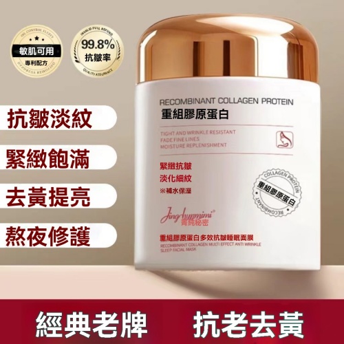 【重組膠原蛋白】抗皺淡紋、緊緻飽滿、去黃提亮、熬夜修護,睡眠麵膜免洗抗氧化補水保濕,補充膠原不油膩不厚重,一款適合你的晚安麵膜!